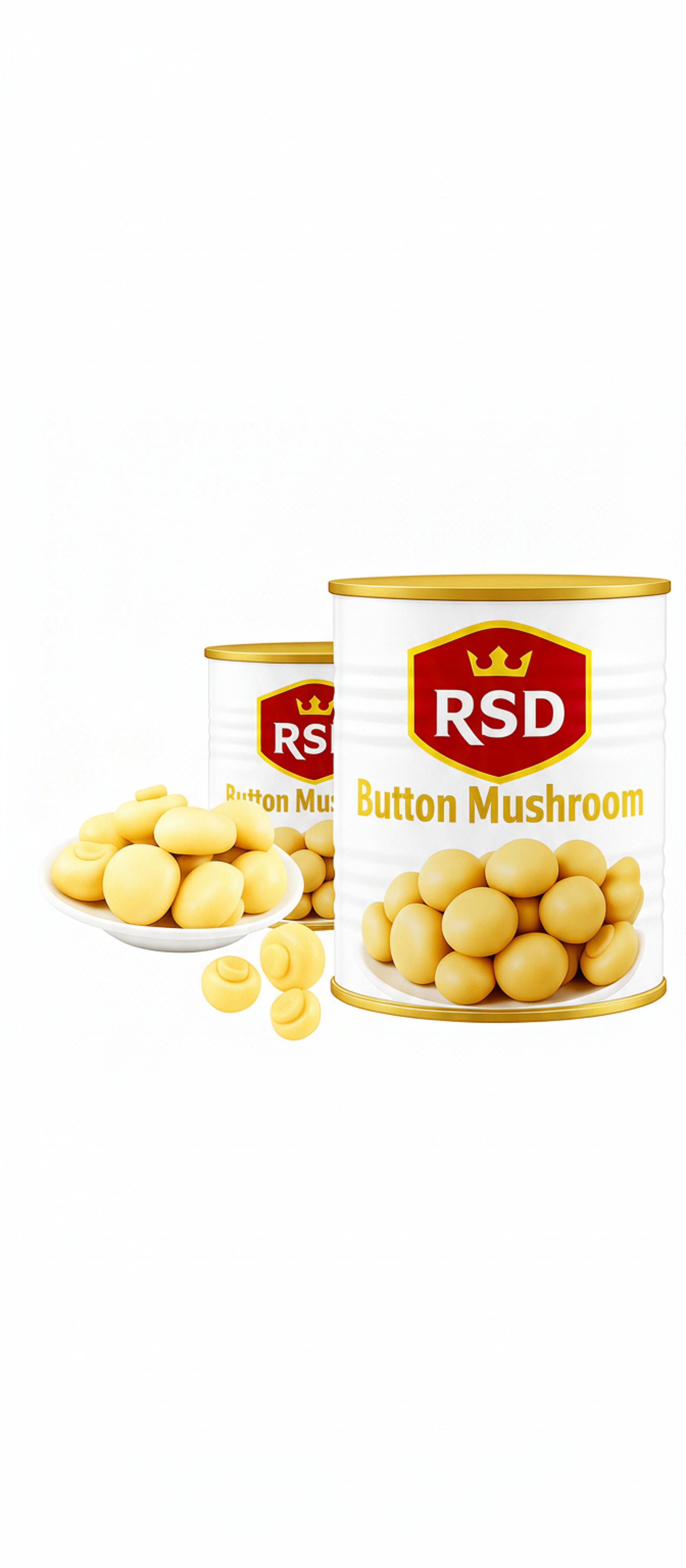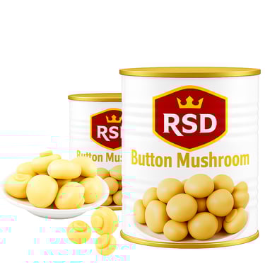Quality Mushrooms: Canned button mushrooms, available whole and sliced.