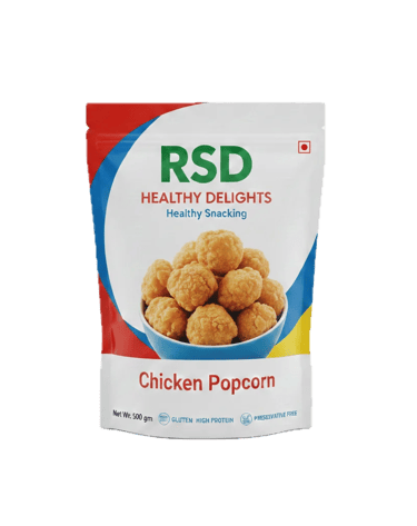 Bite-sized Chicken Popcorn with a crispy coating and tender texture, designed for quick and easy preparation.