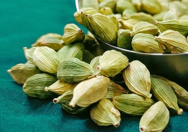 RSD Cardamom is a spice recognized by their small seed pods: triangular in cross-section andspindle-shaped, with a thin, papery outer shell and small, black seeds with green outer skin. Size ranges from 7.5/8 mm.