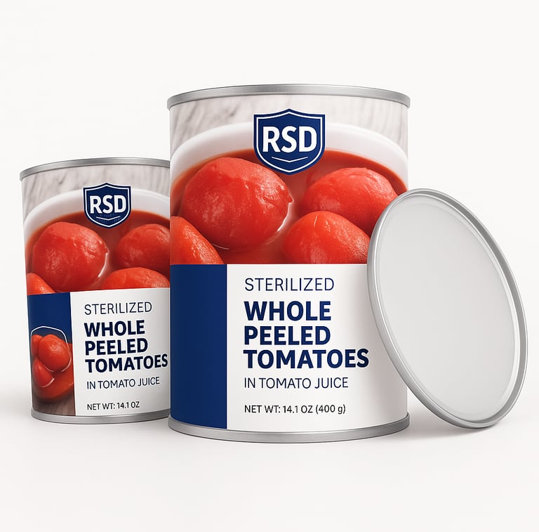RSD Canned Foods bring you farm-fresh taste and convenience in every can. From tomatoes and mango puree to pineapple, mushrooms, and peas, our range helps you create delicious meals easily while ensuring consistent quality.