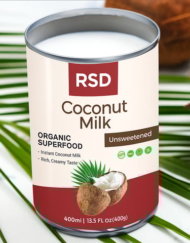Premium-quality coconut milk packed in 400g food-grade tin cans, ideal for culinary, bakery, and beverage applications. Extracted from fresh, mature coconuts, our coconut milk is rich, creamy, and full of natural flavor—perfect for curries, desserts, smoothies, and dairy-free recipes.